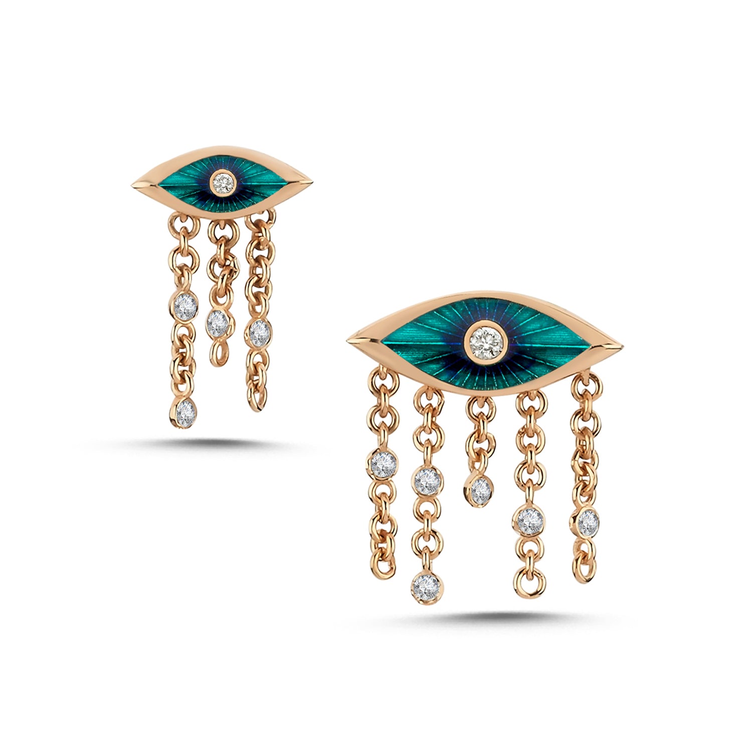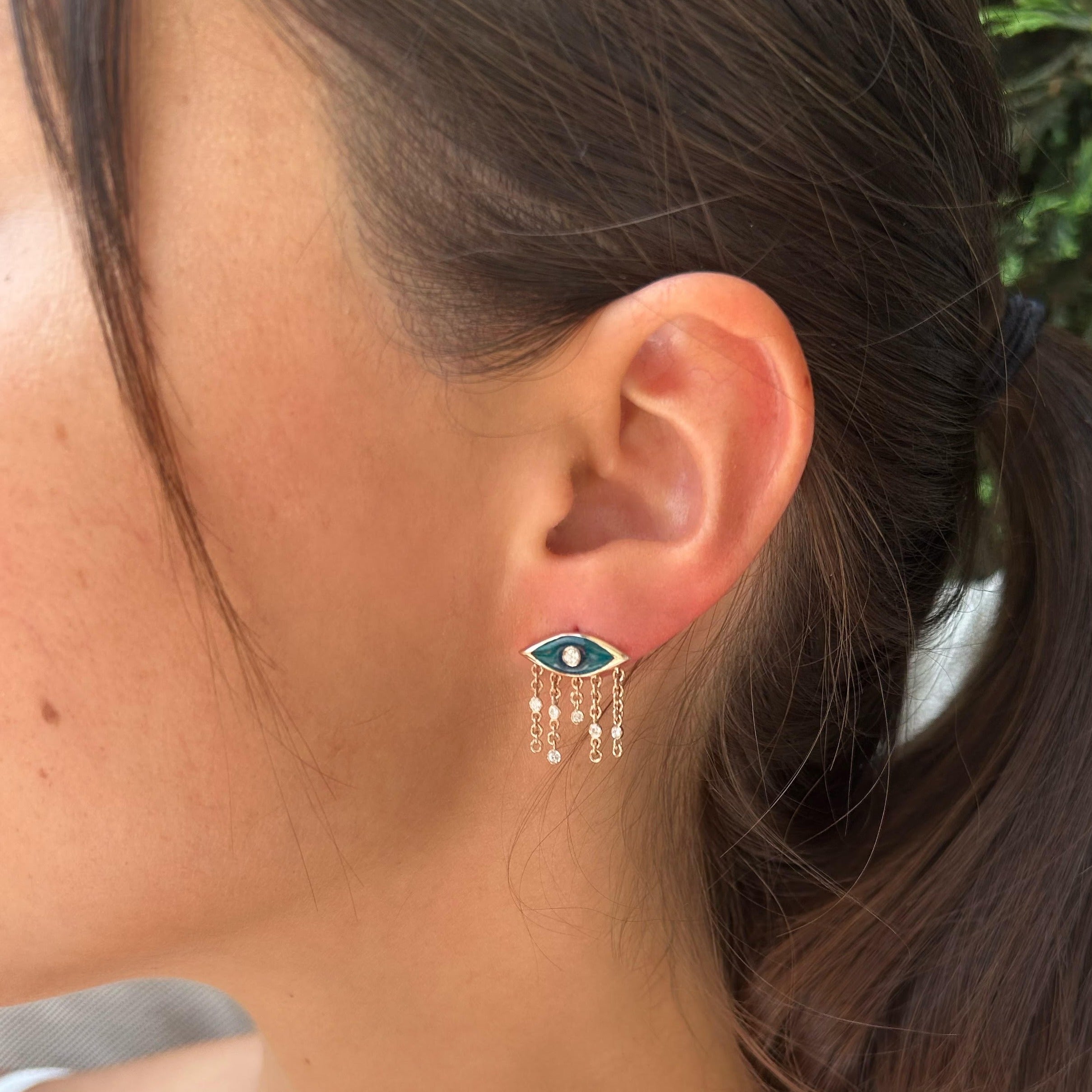 Evil Eye Chain Earring with Enamel & White Diamond Medium - Single