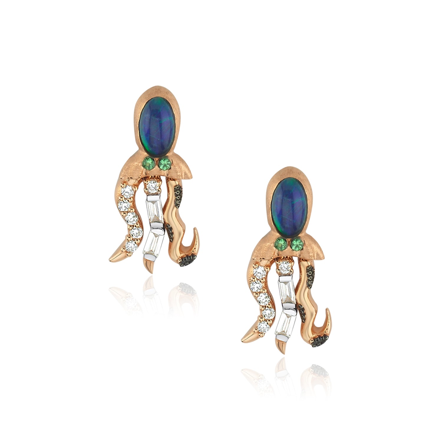 The Treasures of the Sea Collection is inspired by the water element which represents the treasures and the natural stones hidden in the depths of the sea. Selda created this collection during her life in the Aegean, where she was born, to show the women's sense of freedom with the endless journey we find the Turquoise waters . We use Australian Opals which are believed to bring good fortune, peace, joy, and wealth to the wearer.