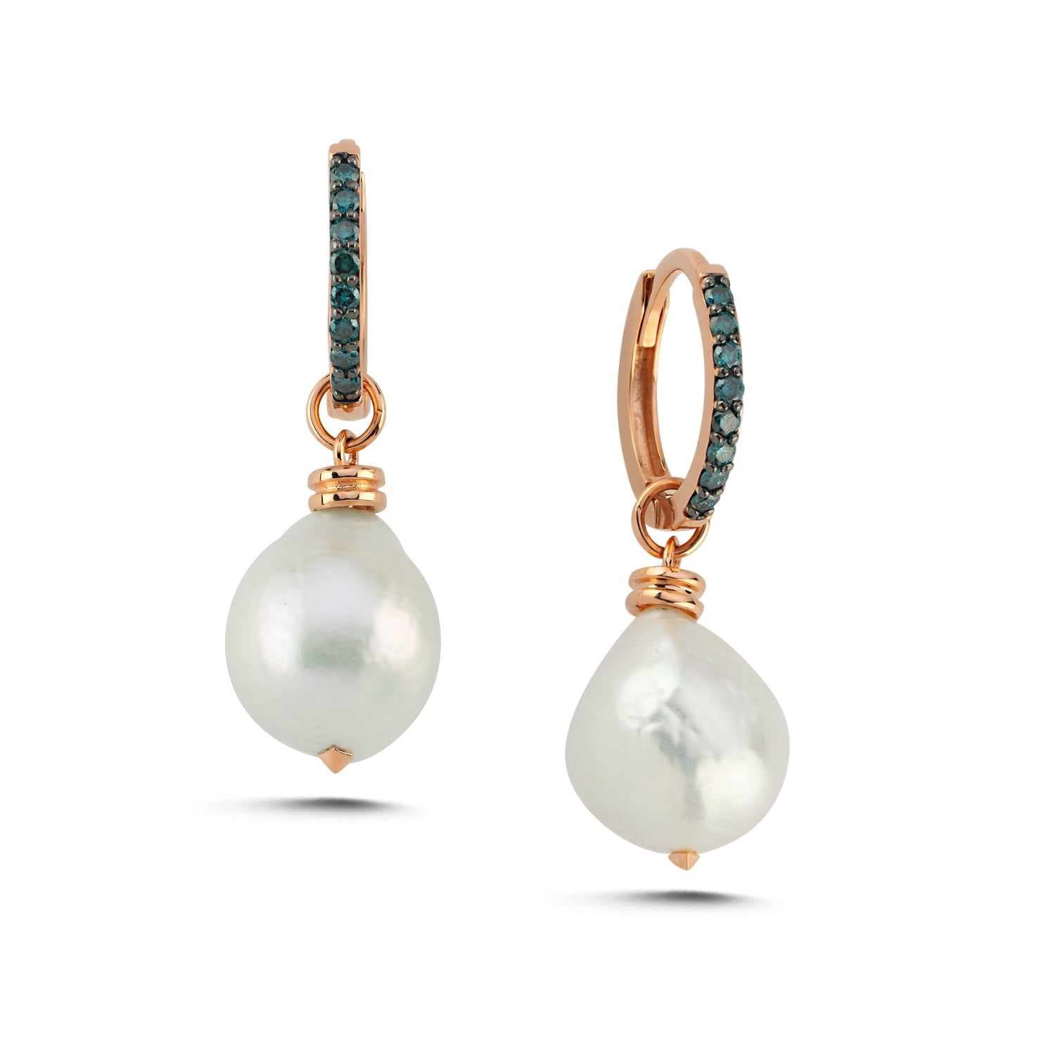 Pearl Earrings with Blue Diamond