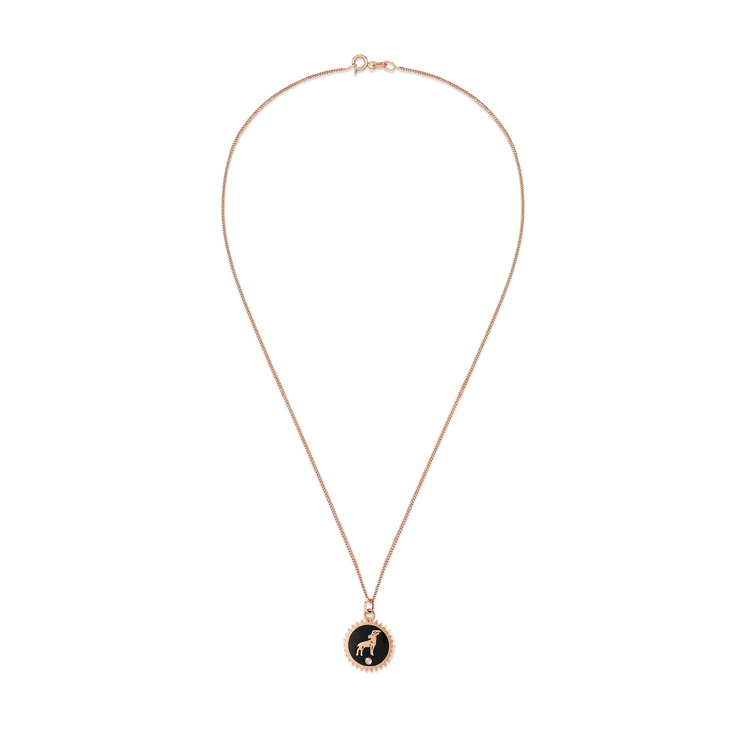 Capricorn Necklace with Black Enamel & White Diamond