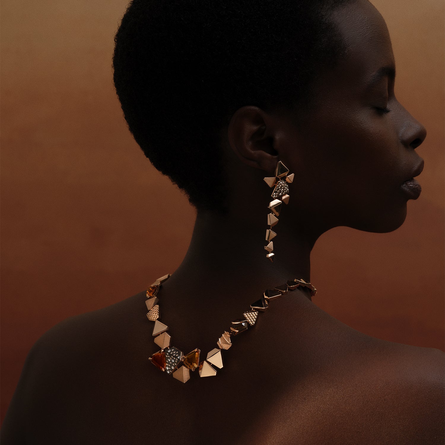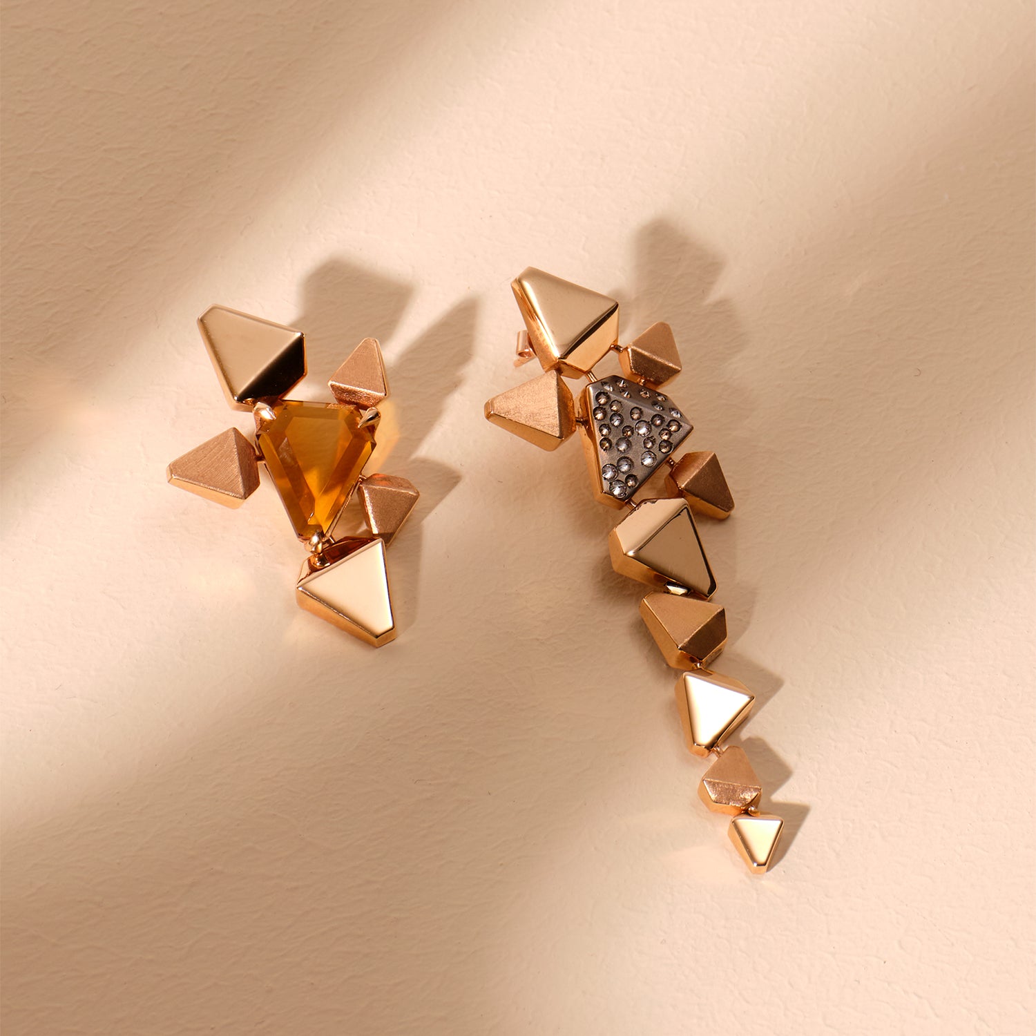 “G A I A” collection embodies a harmonious blend of special elements such as; texture, special Cut Citrine, Reverse Set Diamonds, satin finish and Black rodium, simultaneously presenting an abstract dragon module as the centrepiece, symbolizing courage, wisdom, and power which is Selda Jewellery’s brand DNA.