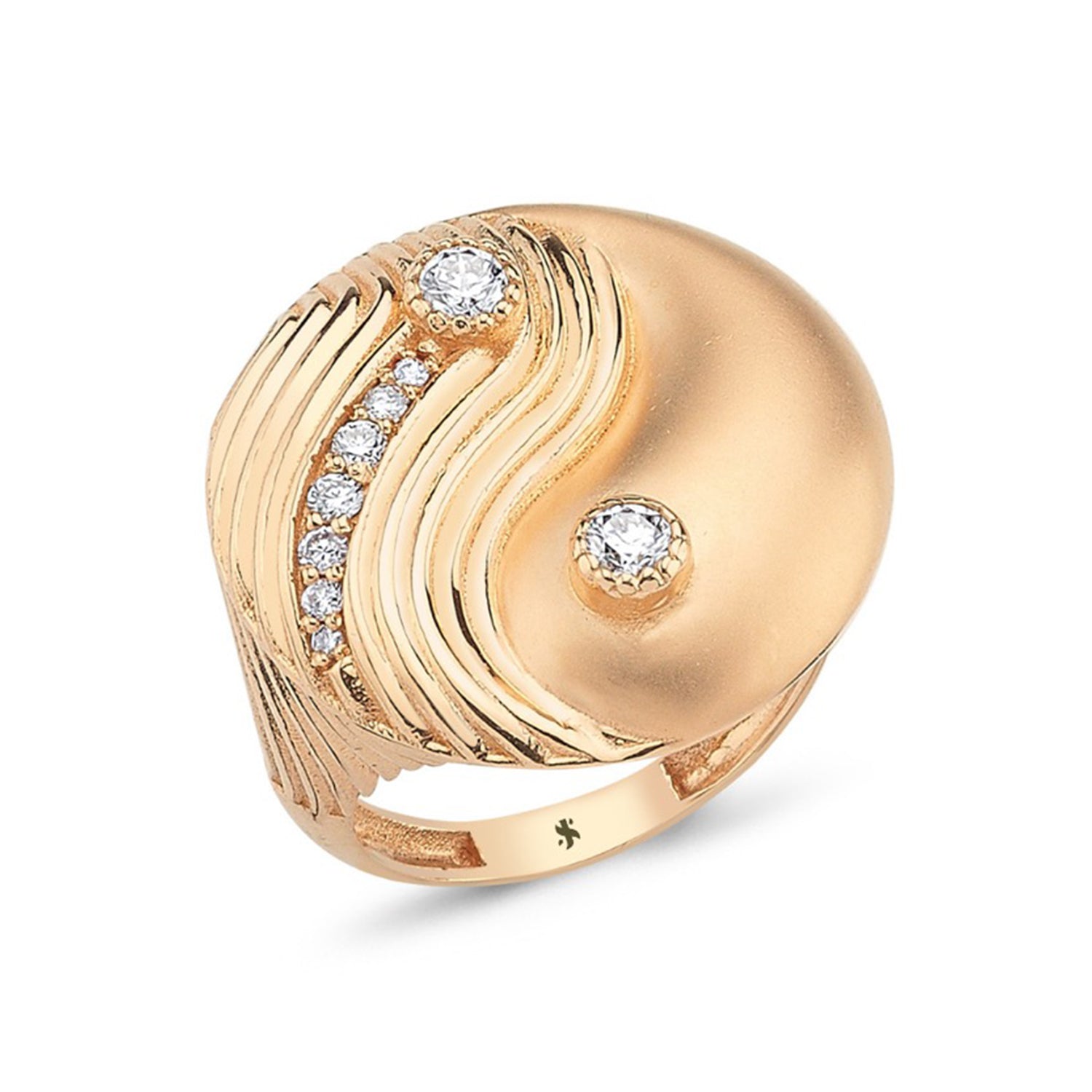 Yin Yang Pinkie Ring with White Diamond