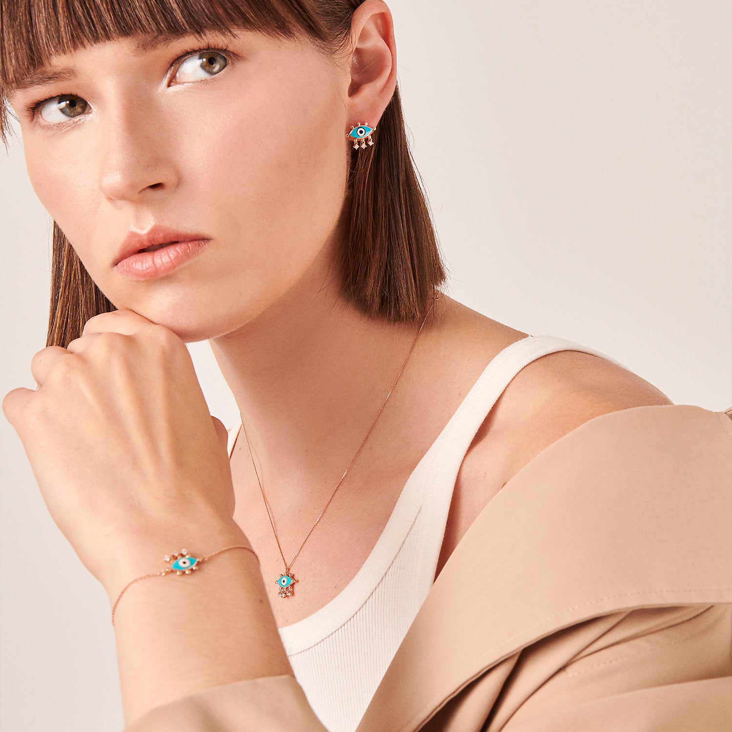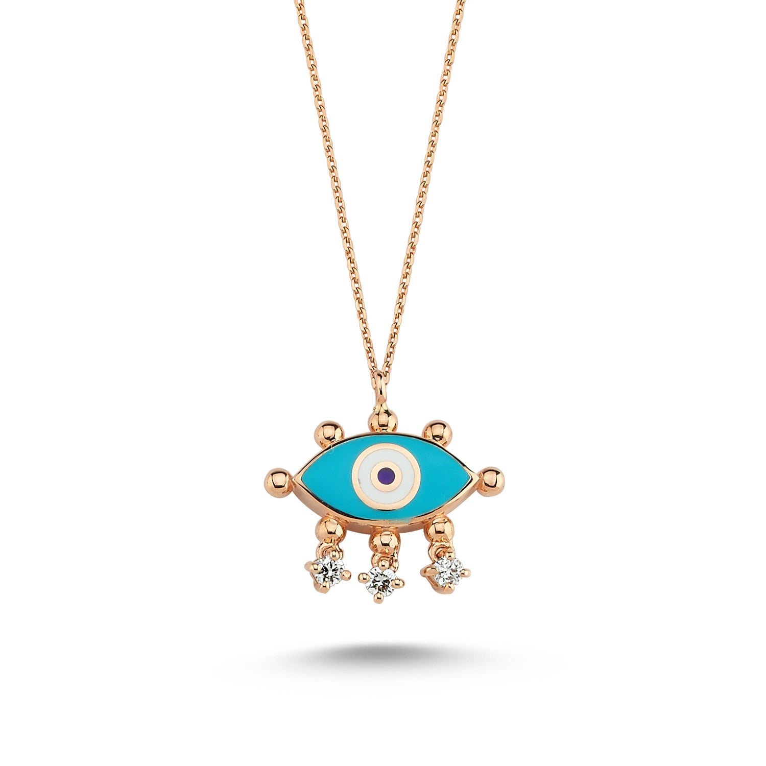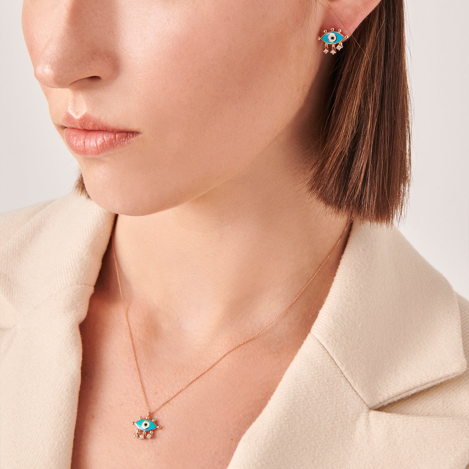 Evil Eye Necklace with Turquoise Enamel & White Diamond