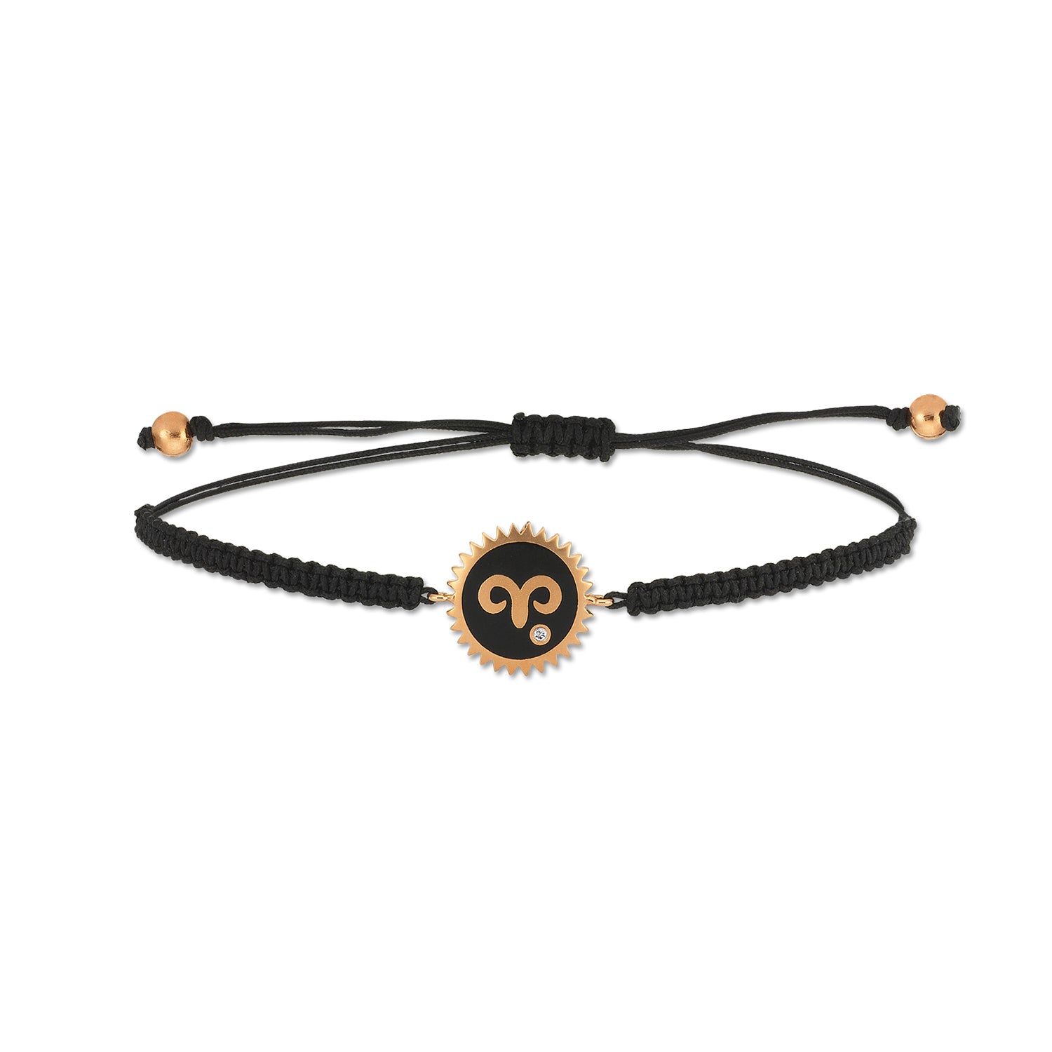Aries Cord Bracelet with Black Enamel & White Diamond