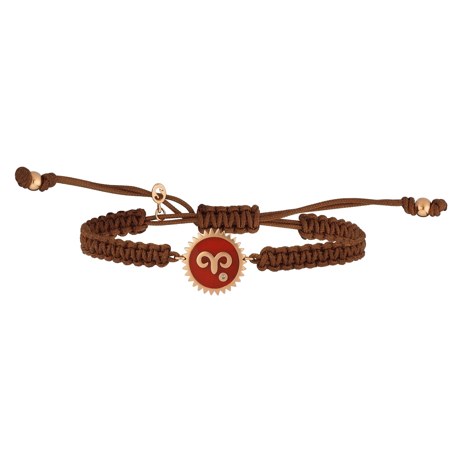 Aries Cord Bracelet with Coral Enamel & White Diamond