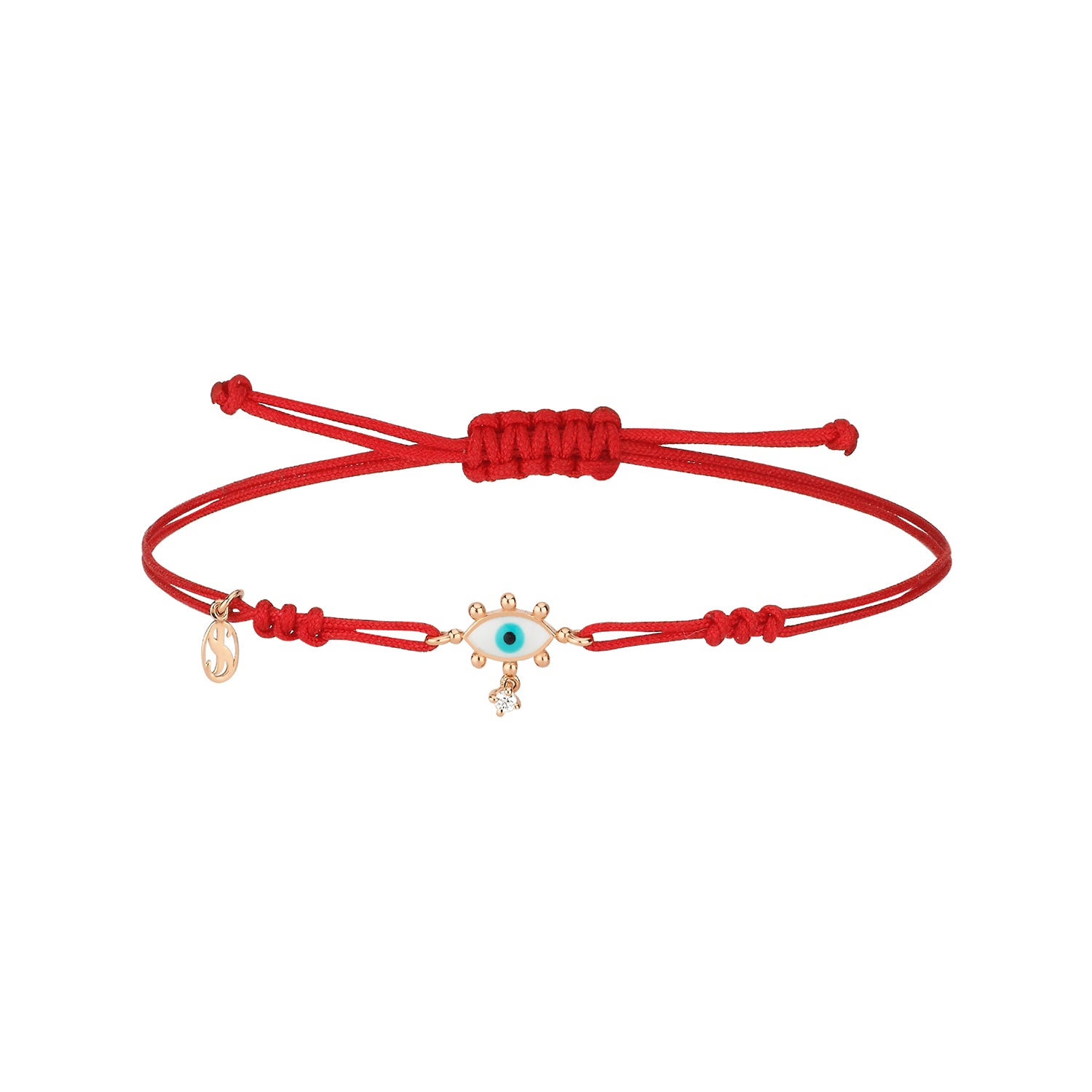 Evil Eye Cord Bracelet with White Enamel & White Diamond