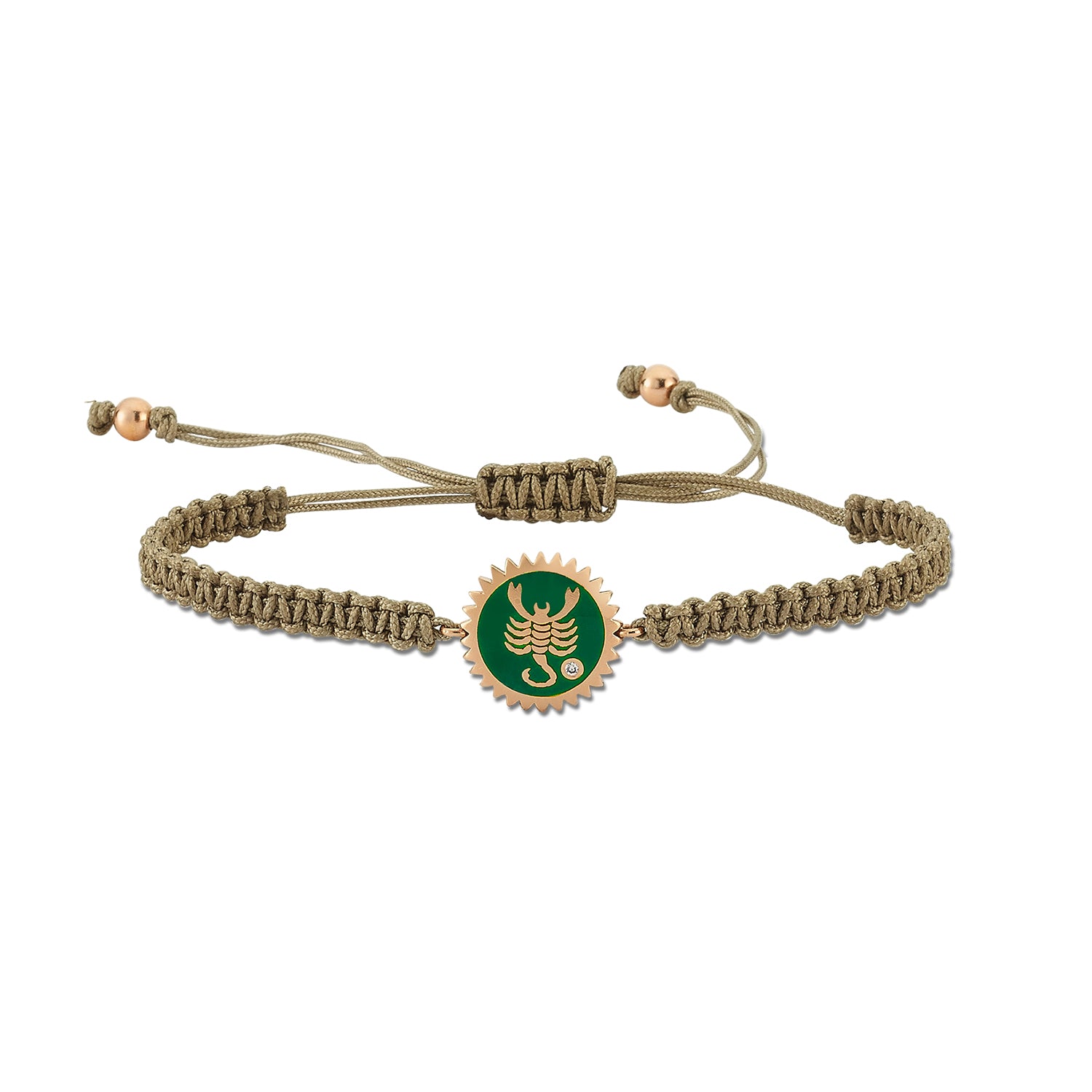 Scorpio Cord Bracelet with Green Enamel & White Diamond
