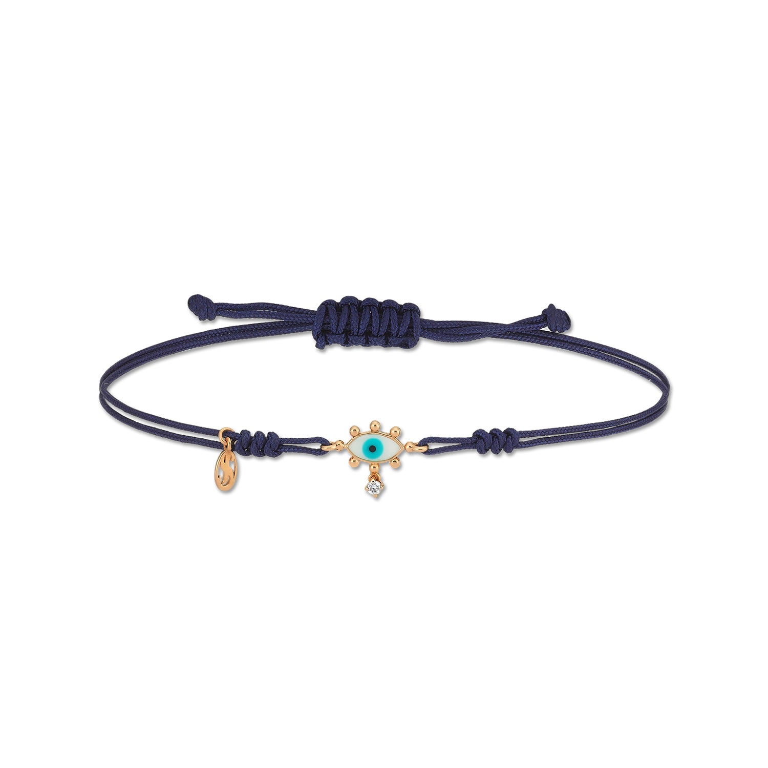 Evil Eye Cord Bracelet with White Enamel & White Diamond