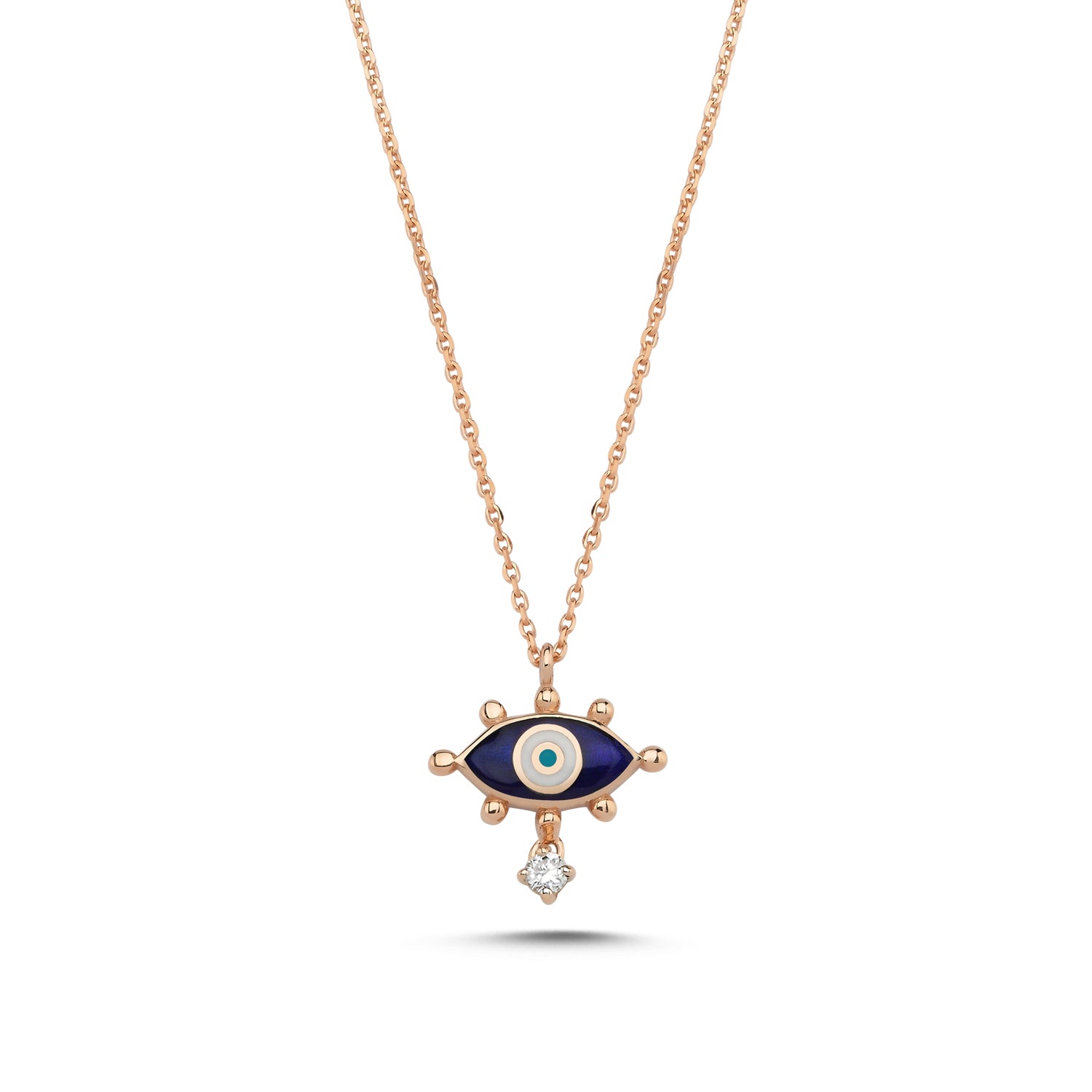 Evil Eye Necklace with Navy Blue Enamel & White Diamond