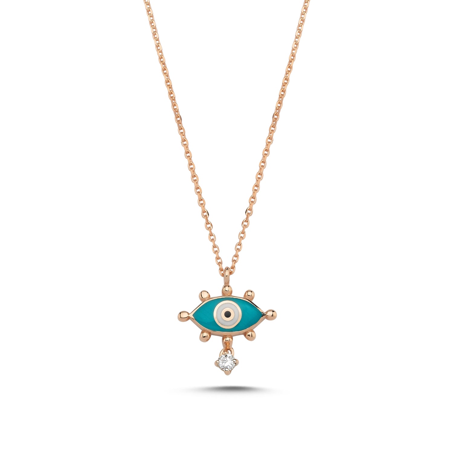 Evil Eye Necklace with Turquoise Enamel & White Diamond