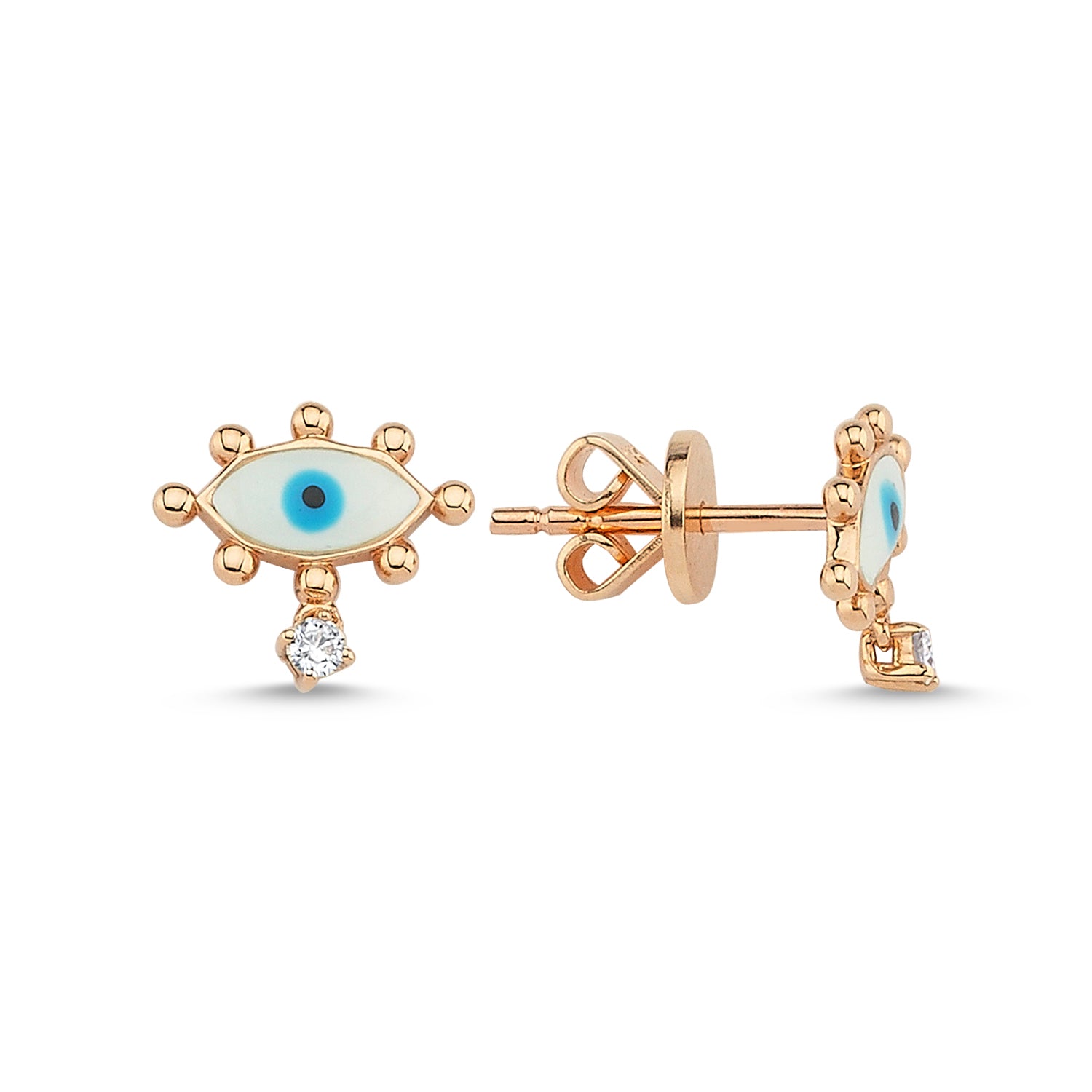 Evil Eye Stud Earring with White Enamel & White Diamond - Single