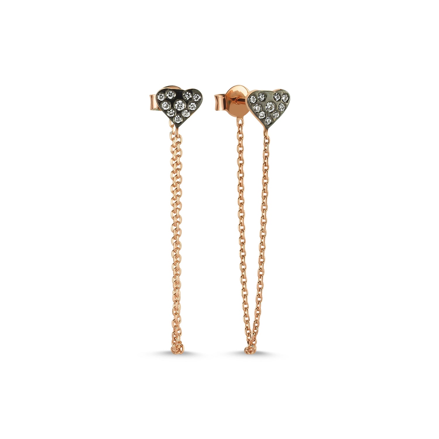 Heart Chain Earring with White Diamond