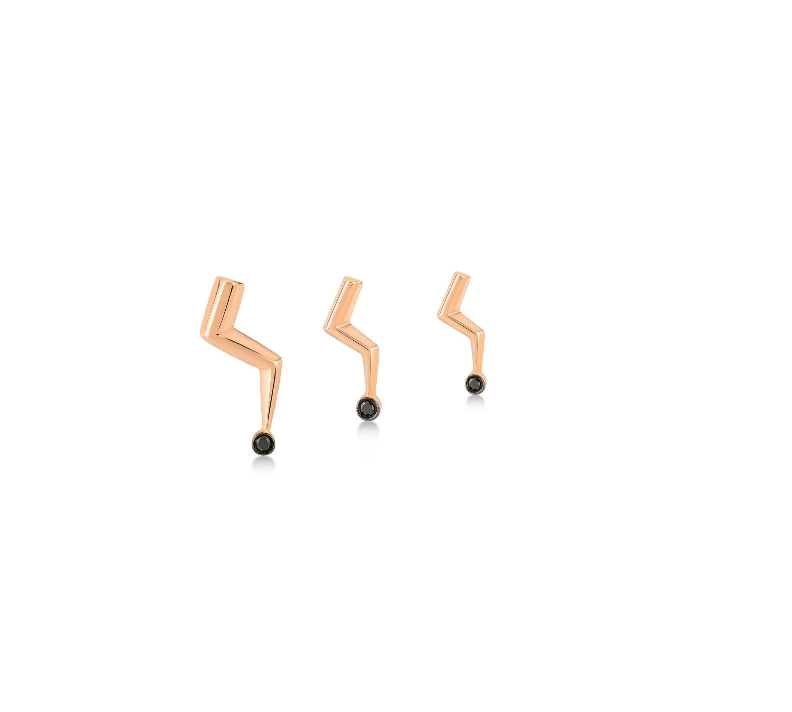 Lightning Stud Earring with Single Stone Black Diamond Large - Single