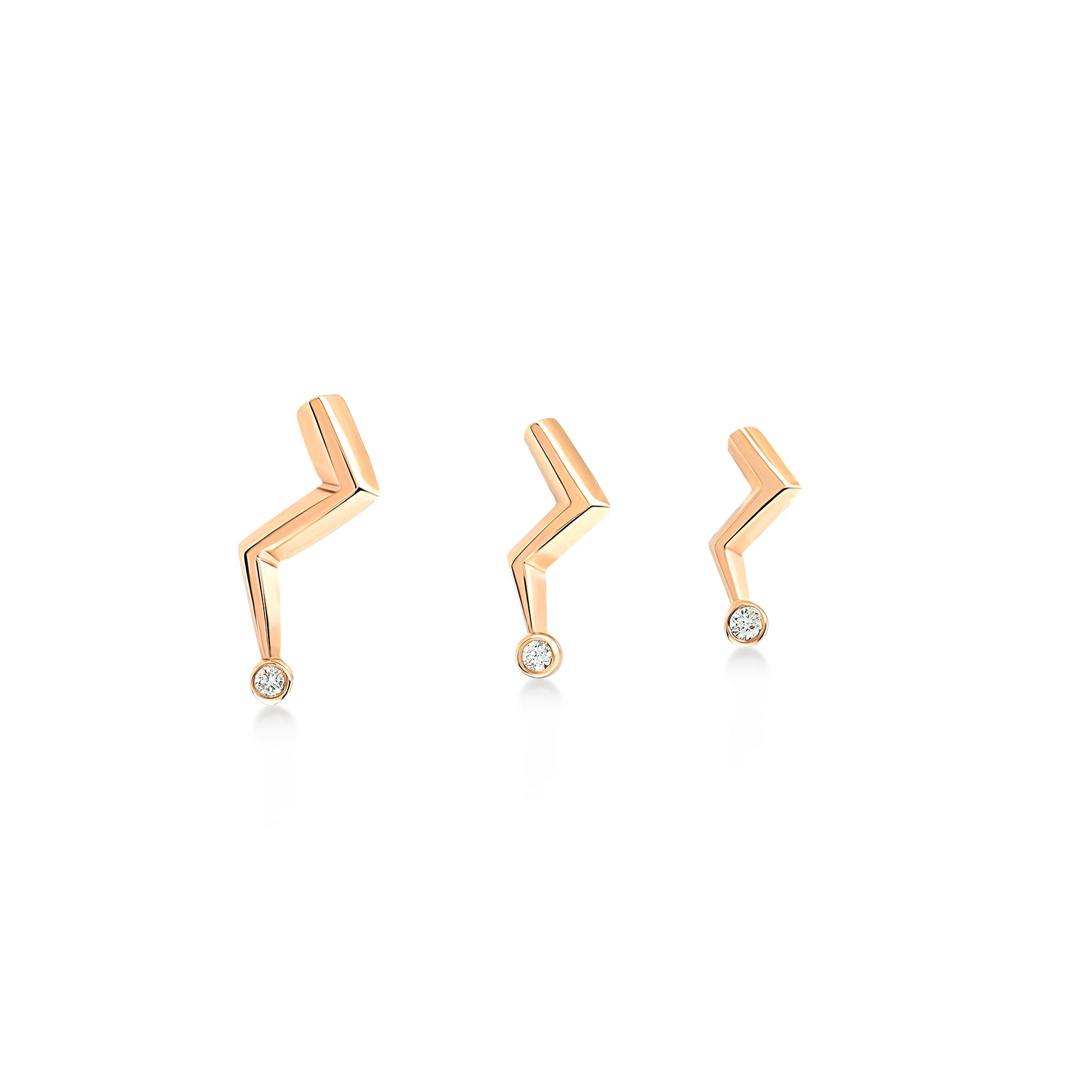 Lightning Stud Earring with Single Stone White Diamond Large - Single