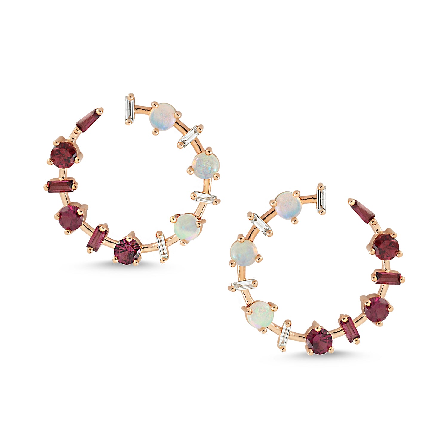 Galina Earrings - White Opal & Rhodolite & White Diamond