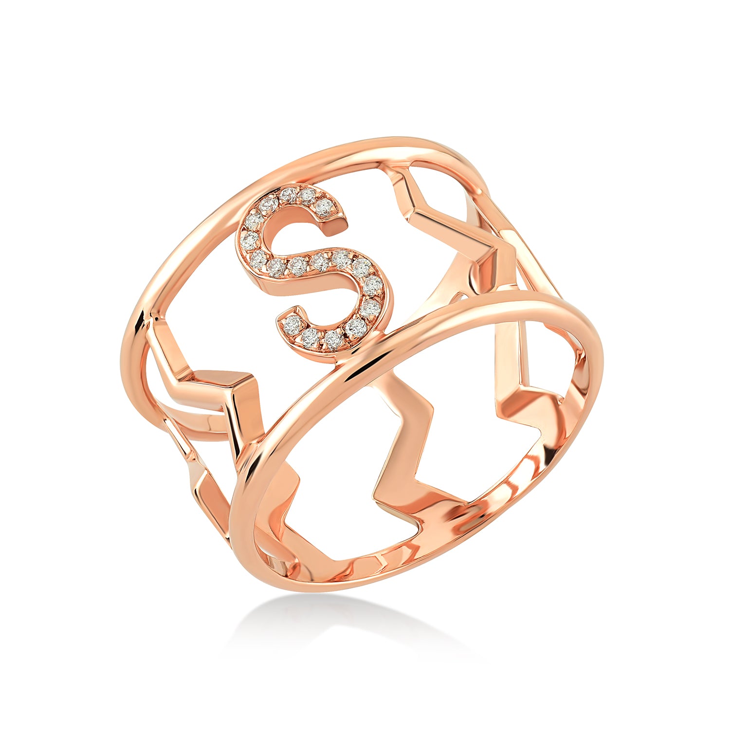 Initial Lightning Ring with White Diamond